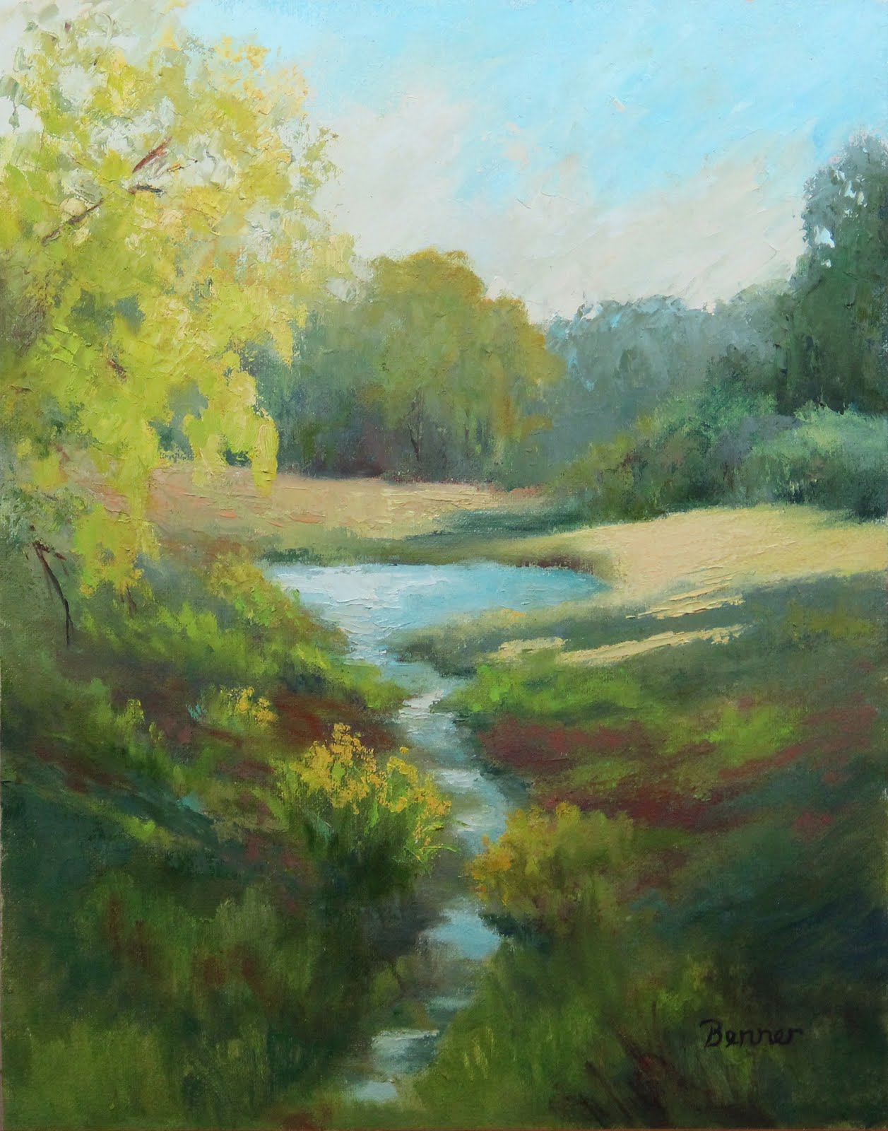 Painted en plein air at Cordorus State Park, Pa. on a warm light filled day in May. Painting is 11 x 14 on canvas.